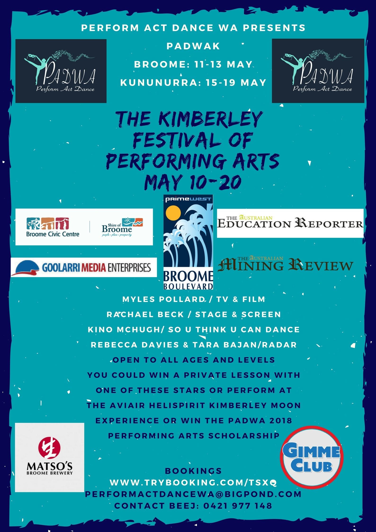 If you are interested in supporting this event along with partners already on board such as Broome Civic Centre, Goolarri Media, Broome Chamber of Commerce & Industry, Matsos and Seashells Broome, you can contact Beej on 0421 977 148 or email performactdancewa@bigpond.com